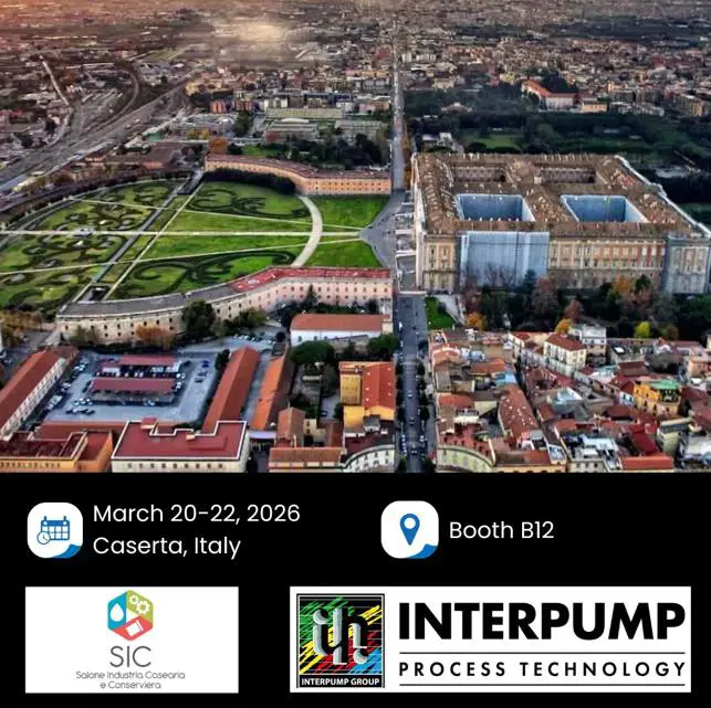📢 Lo staff di Interpump Process Technology partecipa alla XV edizione del Salone Industria Casearia e Conserviera (SIC), dal 20 al 22 Marzo 2026 presso il quartiere fieristico A1Expò – a San Marco Evangelista (Caserta).